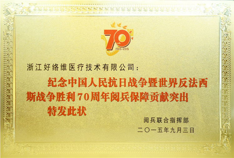 70周年閱兵保障突出貢獻(xiàn)獎狀